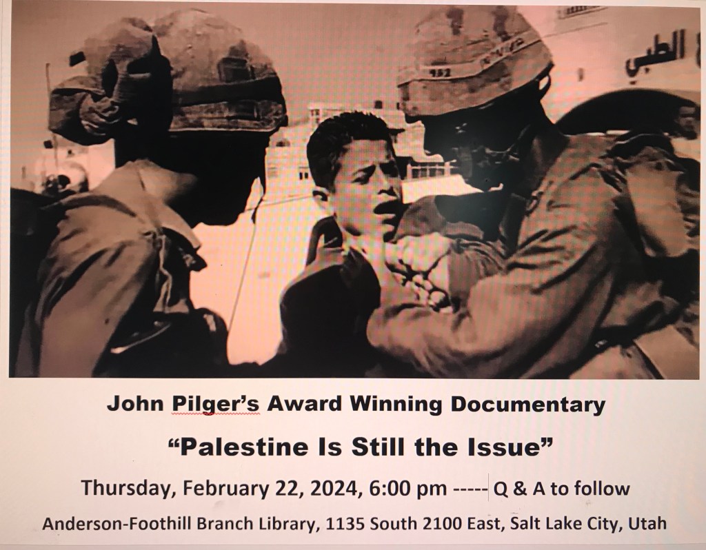 Shortly after this film was released, UJPHL was joined by film makers, Abby Martin and Mike Prysner, for a screening at the University of Utah in September 2019. This film was an eye opener for all those involved in its making, and then for anyone that saw it. Four years later, the situation has never been more dire.