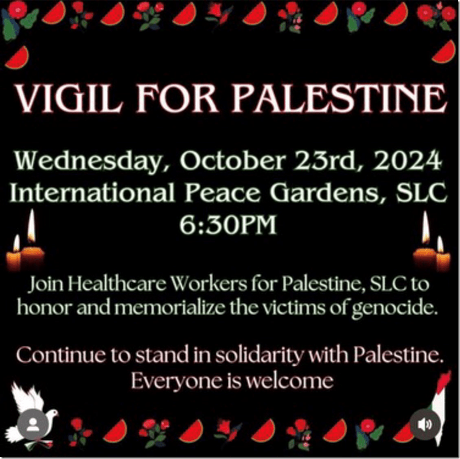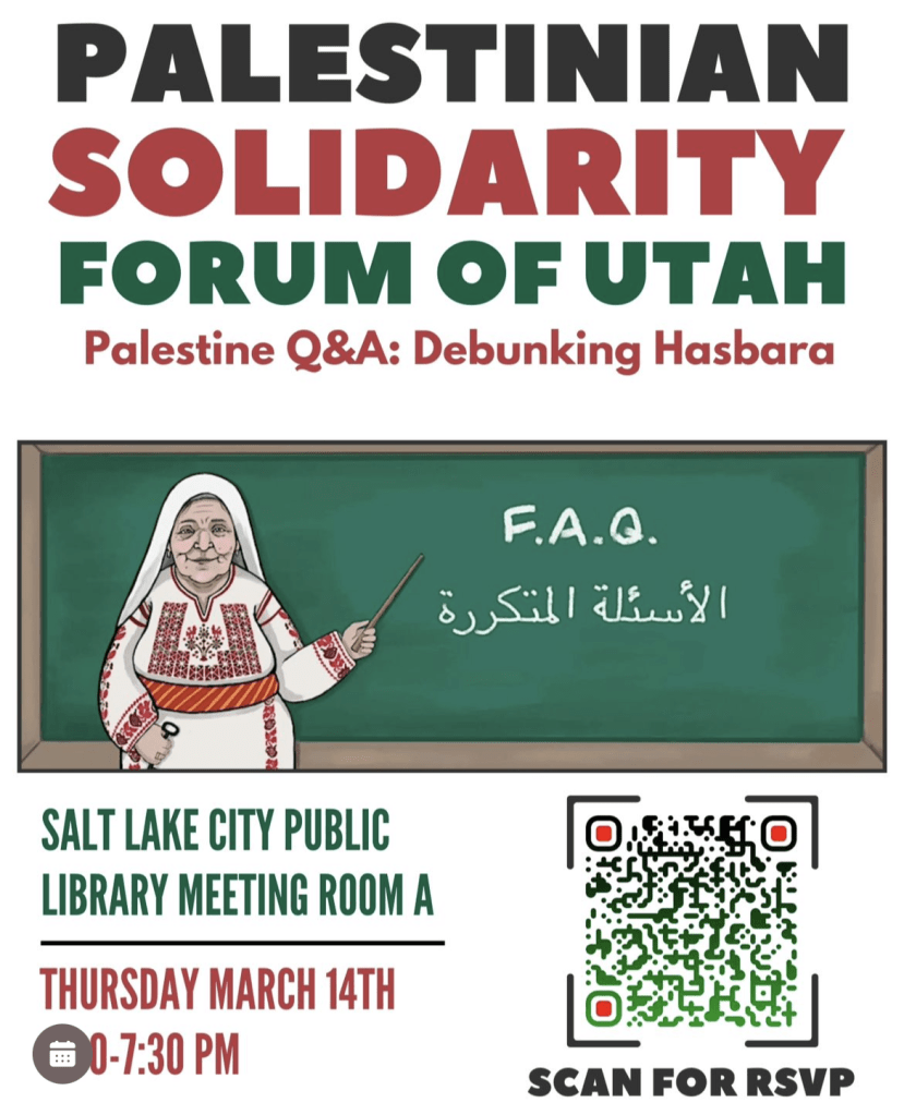 WHAT: Benefit for Palestinians, sponsored by Salt Lake Artists Against Genocide